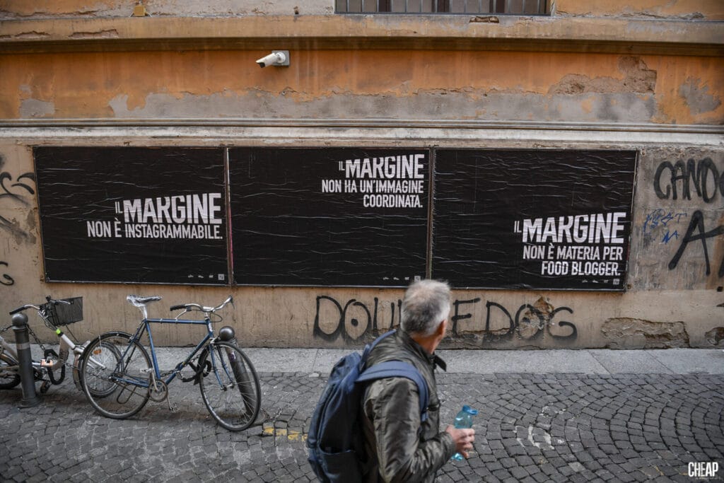 La nostra collaborazione con CHEAP nasce da un linguaggio comune: quello della poster art come spazio politico, condiviso e accessibile. Da oltre dieci anni, CHEAP trasforma le strade di Bologna in un laboratorio di riflessione pubblica, portando sui muri narrazioni e immaginari che spesso restano invisibili.