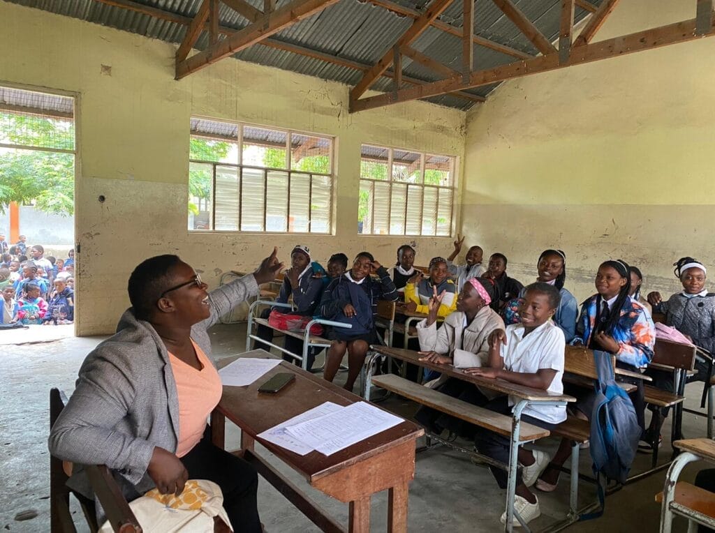 A minha colega e especialista em género, Graça Rita de João, desempenha um papel crucial nestas actividades. Acompanhá-la ao longo deste processo permitiu-me testemunhar em primeira mão como estas iniciativas se desenrolam do princípio ao fim. A Graça é uma educadora enérgica e apaixonada, com uma paciência notável e uma riqueza de conhecimentos sobre a violência baseada no género em Moçambique. A sua capacidade de se envolver com as crianças, não só profissionalmente mas também a nível pessoal, promove um ambiente de confiança onde elas se sentem encorajadas a participar, a falar e a aprender. Graças à sua orientação, passei a apreciar a importância de compreender o público e de adaptar as estratégias de envolvimento em conformidade.