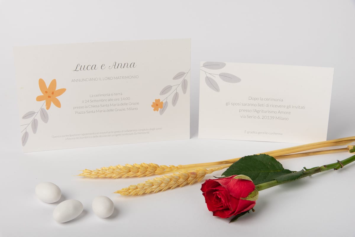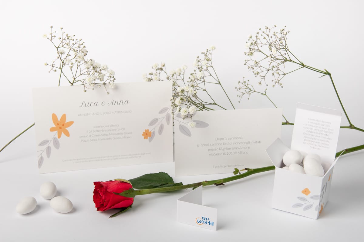 Scegliete un modo speciale per invitare i vostri ospiti. Con una partecipazione WeWorld stupirete amici e parenti e, grazie al vostro gesto, tanti bambini e donne in difficoltà avranno un futuro migliore.